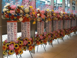 昔ながらの開店花輪。古いよって言われる事もありますけれど、しっかり目立つアイテムですね。