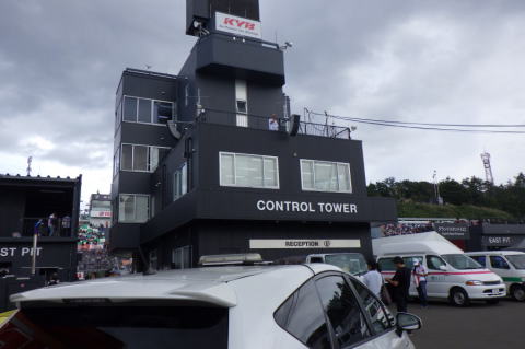 | 模様替えは他にもありました。コントロールタワーの雰囲気が違います。黒を基調とした雰囲気になっています。ってか、ピット全体の雰囲気が変わっています。以前のバラックづくりの雰囲気が一掃され、最近できたサーキットの雰囲気があります。調べてみると21年、22年に改修をしたのだとか。丁度オレが観戦していない年です。ガレージの間口サイズを広げるという全面改修をしたようです。これによりピットガレージが伸びたので車検場やメディカルセンターの位置を変更したようです。昨年も来たはずですが、気づきませんでした。まぁ、昨年は土砂降りでしたからね・・・。 |