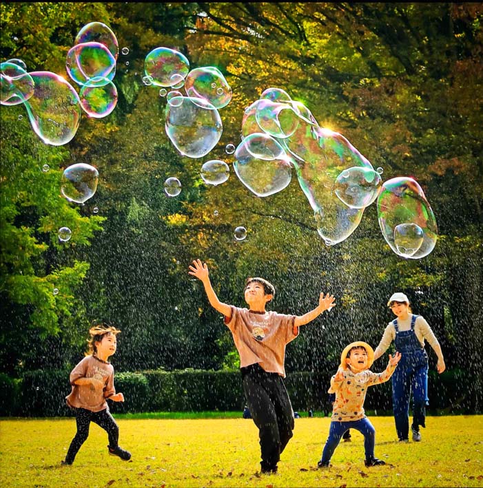 入 選 「 楽しいシャボン玉 」 岡本 洋三 (東京都)