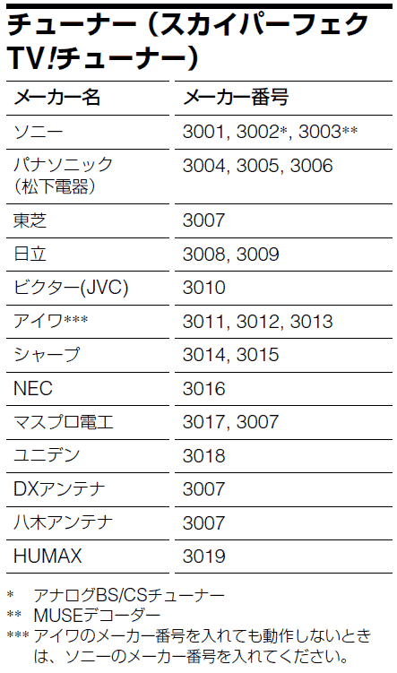 取扱説明書・メーカー番号表付属 (メーカー番号表 PDFファイル) 説明書 ダウンロードページへ |