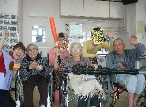 | 和光苑のお年寄りが姉崎 幼稚園を訪問しました。大勢 の園児が正門の前に並ん で、お出迎えしてくれて、そ の園児達を見た入居者の皆 さんは、嬉しさのあまりに、 バスを降りる前から涙を流し ていました。お互いに並んで のご挨拶では、双方が少し 緊張ぎみでしたが、それもあ っという間に、ワ〜!!となだれ を打つように、仲良しになっ て、お年寄りと子供達がそれ ぞれ、思い思いに一緒にな って遊びだしました。 車椅子を押してくれる子、 おもちゃを渡してくれる子、 絵本を読んでくれる子、それ ぞれの楽しみ方で仲良く遊 んでくれました。中には、砂 場にしゃがんで、一緒に泥団 子を作るお年寄りまで出て、 はだしで飛び回る園児達と 一緒に泥まみれの入居者も いました。その様子に刺激さ れた職員達も、お仕事を忘 れたかのように、園児に馬 乗りにされて遊んでいまし た。 一緒になって遊んでい ると、時間のたつのも早く、 あっという間に帰苑の時間 になってしまいました。今度 は、姉崎幼稚園の子供達が グランモア和光苑に遊びに 来る番ですよね。和光苑に は、子供達に会いたがって いるお年寄りがいっぱいい ます。みんなで遊びに来てく ださいね。 |