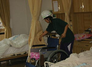 | 10月5日(水)小雨の降る中、 和光苑に突然サイレンの音 が鳴り響きました。今日は、 防災避難訓練(夜間想定)で す。和光苑では、沢山のお 年寄りが生活されています。 災害は昼間に起こるとは限 りません。今回は、深夜に火 災が発生したと仮定し、避難 訓練がスタートしました。和 光苑の夜勤者は3名、そして 宿直者が1名、合計4名で火 災に対応しなければならな いのです\(◎o◎)/! サイレンが鳴ったらまず火 元を確認しに行きます。誤報 の可能性もあるからで す。今回は2階の調理室より 出火しました。火を見つけた らまずは消火器を持ち初期 消火!! 自分たちで消火でき ない場合はすぐに消防署へ 連絡をします。そして、苑内 のお年寄りに知らせるため の館内放送・施設長への連 絡を行い、職員の応援を頼 みます。消火はプロである消 防士に頼みますが、避難し たお年寄りへの対応は介護 のプロである私たち職員が 行わなければならないから です。その合間にも館内の 窓を開放、お年寄りを早く外 に避難させなければなりま せん。4人という少人数です から、お互いの声掛け・チー ムワークが大切になります。 和光苑の職員は、日頃から チームワークはばっちりなの で、今回の夜間想定も、無事 全員を避難させることができ ました(●^o^●) 災害は突然やってきます。 日頃から備えていなけれ ば、災害時迅速に対応する ことはできません。和光苑で は、一年に何度も防災訓練 を実施し、いざという時に備 えているのです!! |