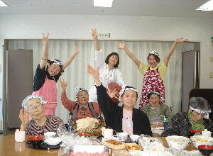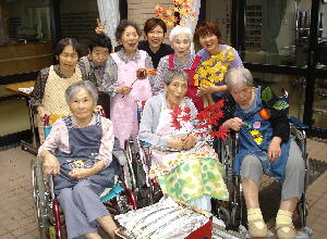 | 10月のお誕生日会は、入居 者・御家族&職員達が、み んなで仮装パーティーのい でたちで、入居者のお誕生 日をお祝いしました。この写 真を見れば、言葉の説明は 要らないと思います。私は、 御家族も一緒にカブリモノを してくれたのを見たのが初め てで、写真を見た時に、思わ ず爆笑してしまいました。こ んなノリノリの御家族もいる グランモア和光苑で〜す。(* ^。^*) |