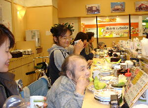 | たくさんの魚たちに癒され た和光苑のお年寄りたちで したが…(*^^)v 食いしん坊 の和光苑ご一行様は『お腹 がすいちゃったよ〜』と食欲 がわいてきた様子(^.^)。 ・・・というわけで、『お腹も 満たされに行きましょう!!』と 向かった先は、横浜中華街 です。 食いしん坊ご一行様は、た くさん食べられる飲茶の食べ 放題に行きました。 食いしん坊の皆様、お店に 着くなり、チャーハン・春巻・ 餃子・シュウマイ…と、次か ら次へと注文し、テーブルの 上は、あっという間にいっぱ いになってしまいました。 『こんなに食べられるの?』 との職員の心配をよそに、ズ ラリと並んだ飲茶をペロリと たいらげてしまいました。 そして最後の最後には、デ ザートも!! しっかりといただ き、職員は、皆の旺盛な食 欲にビックリヽ(^。^)心もお腹 も満たされた横浜の旅に、皆 さん大満足の一日になりまし た(*^_^*)v |
