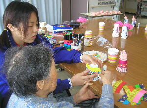 | 2月17〜18日、みんなでひ な人形作りをしました!!v (^▽^)v 始めは真剣に人形 を作ったり、お花を咲かせた りしていましたが、だんだん と、会話が弾み昔苦労した 事や楽しかった事なども話し てくれました☆お話の中に は、恋愛話も浮かんできて、 会話にもお花が、たくさん咲 きました♪刀♯(*^▽^*) おだいり様・おひな様の洋服 作りでは、みんなそれぞれ 洋服の柄や色等を選んで作 りました!お顔も描いて出来 上がり★ そして、最後におひな壇と 一緒に写真撮影!! 中には、ポーズをとってくれ る人も出てきて、最初から最 後まで楽しく過ごす事が出来 ました☆★☆\(^□^)/ 個性ある人形は何処のひ な人形よりもステキなものと なりました★☆見ているだけ で笑みがこぼれました(●> ∪<●) |