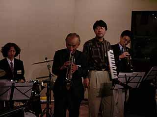 次は、KLMS (Keio Light Music Sosiety) の大先輩、松田さんによる トランペット演奏です。松田さんは昭和16年経済学部卒、なんと81 歳になられるそうです。 |