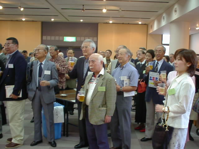 懇親会乾杯の音頭は参加者最年長 昭和14年卒の内山定男さん |