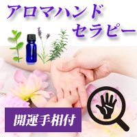 アロマハンドセラピーと開運手相がセットになったお得なコースです。両手~両肘までアロマオイルで施術後に開運手相であなたの手相をみて、開運アドバイスをいたします。ヒーリング音楽とアロマの香りでリラックスしていただけます。ぜひお気軽にお申込み下さい。