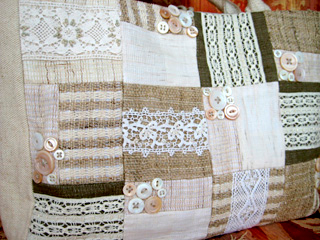 | キット内容 | : | 麻布4種、デニム、キャンバス地、グログラン、 ヴィンテージレース5種、ヴィンテージビーズ3種、ファスナー2本、革、貝ボタン、麻のリボン、麻のブレード、丸紐、接着芯、接着キルト芯、丸カン、麻刺しゅう糸、底板 |