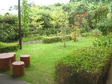 お茶の間通りから一丁目の山側に向かって「園芸クラブ」のお年寄りが育てている花壇と庭園が広がっています。