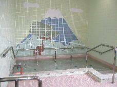 一丁目通りに面して、富士の湯(一般浴室)・花の湯(特別機械浴室)・花の広場(機能回復訓練室)が並んでいます。お年寄りの身体状況に合わせて色々なお風呂が用意されています。